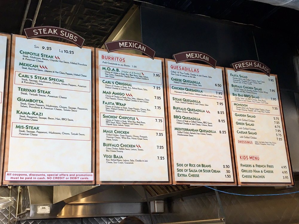 Introducing Carl's Steak Subs, a hidden gem in Waltham, MA, known for their mouthwatering steak subs and diverse menu offerings. With options like cheese quesadillas, garden salads, and delicious side orders like chicken fingers and onion rings, there's something for everyone at Carl's. Customers rave about the generous portions, friendly staff, and the top-notch quality of their food. The popular Carl's Special Steak sub is a must-try, packed with flavorful meat and ample toppings. Despite limited parking and seating, Carl's loyal customers keep coming back for more. If you're a fan of steak and cheese, Carl's Steak Subs is a must-visit spot for a satisfying meal that won't disappoint.